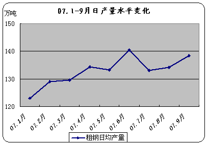 9月粗鋼日均產(chǎn)量138.43萬噸,繼7月小幅回落后連續(xù)兩個月小幅上揚,粗鋼生產(chǎn)勢頭呈回升趨勢。